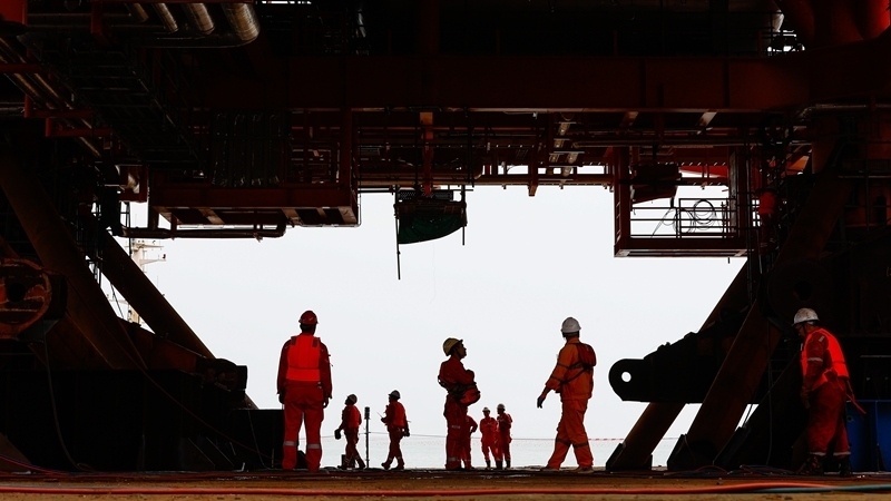 9月8日,工人穿梭在墾利6-1油田10-1北區(qū)塊Ⅱ期開發(fā)項(xiàng)目油氣平臺(tái)安裝作業(yè)現(xiàn)場(chǎng)。