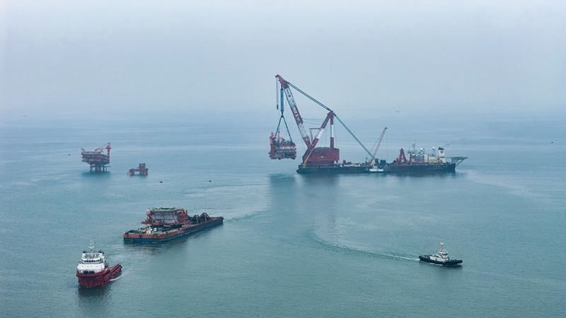 9月8日,隨著重達(dá)4700噸的油氣平臺(tái)上部組塊在渤海南部海域精準(zhǔn)就位,墾利6-1油田10-1北區(qū)塊Ⅱ期開發(fā)項(xiàng)目建設(shè)工作取得重要進(jìn)展,渤海億噸級(jí)油田又一油氣平臺(tái)完成海上安裝。