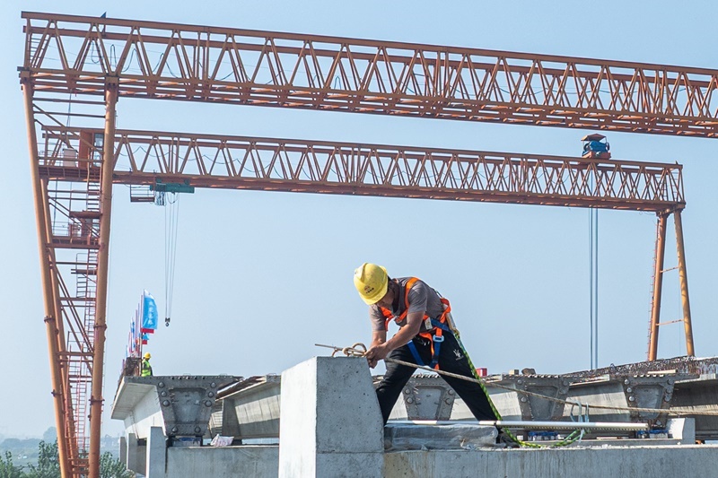 10月6日,在武漢都市圈環(huán)線高速公路孝感南段4標(biāo)項目上,中鐵二十局建設(shè)者進行施工作業(yè)。
