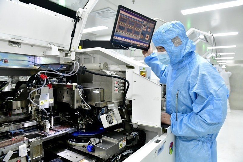 2025年2月13日,在山東一家電子有限公司,工作人員在生產(chǎn)線值守。新華社記者 郭緒雷 攝