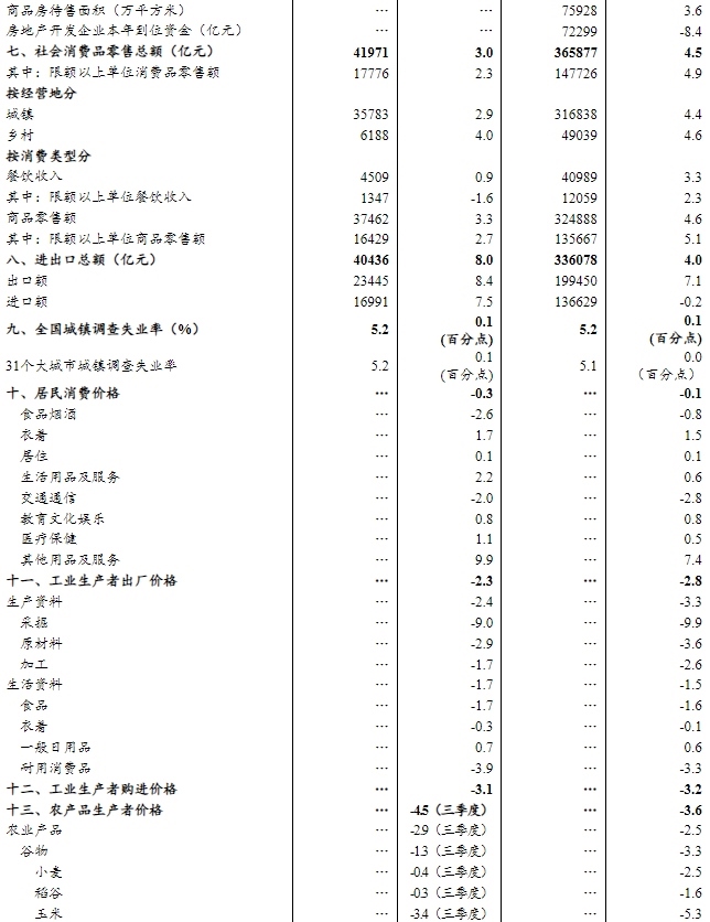 前三季度,在以習(xí)近平同志為核心的黨中央堅強領(lǐng)導(dǎo)下,各地區(qū)各部門認真貫徹落實黨中央、國務(wù)院決策部署,堅持穩(wěn)中求進工作總基調(diào),完整準(zhǔn)確全面貫徹新發(fā)展理念,加快構(gòu)建新發(fā)展格局,認真實施更加積極有為的宏觀政策,積極做強國內(nèi)大循環(huán),促進國內(nèi)國際雙循環(huán),扎實推動高質(zhì)量發(fā)展,國民經(jīng)濟頂住壓力延續(xù)穩(wěn)中有進發(fā)展態(tài)勢,生產(chǎn)供給平穩(wěn)增長,就業(yè)物價總體穩(wěn)定,新動能穩(wěn)步成長,民生保障有力有效,經(jīng)濟運行展現(xiàn)出強大韌性和活力。