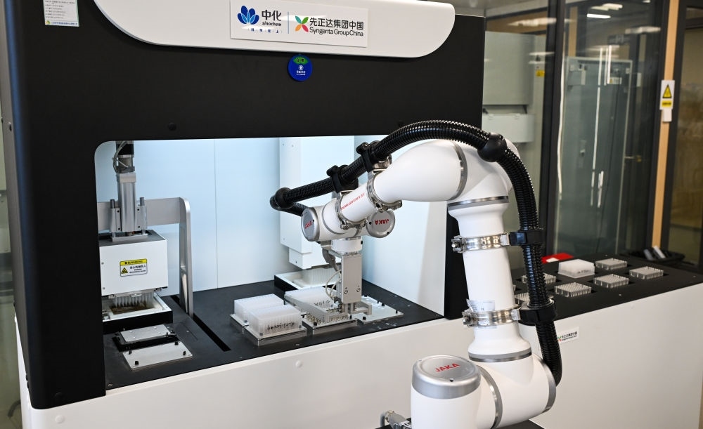 這是9月26日在海南三亞崖州灣科技城中國種子集團(tuán)有限公司拍攝的全自動高通量核酸提取平臺。新華社記者 楊冠宇 攝