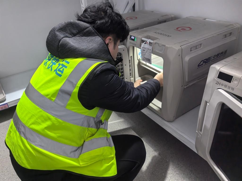 記者在采訪中看到,寵物被托運(yùn)過(guò)程中,全程處于專用的運(yùn)輸箱內(nèi)。運(yùn)輸箱放置在高鐵快運(yùn)柜中,與旅客形成空間上的隔離。鐵路工作人員介紹,這種運(yùn)輸箱自帶空氣循環(huán)系統(tǒng),還帶有含氧量、溫度、濕度監(jiān)測(cè)裝置以及除味裝置,既讓寵物享受到專業(yè)呵護(hù),又能保障其他乘客的乘車體驗(yàn)。