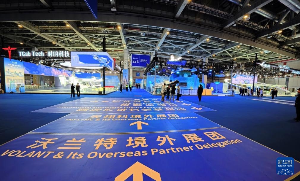 這是第八屆進博會汽車館內(nèi)的未來出行展區(qū)(11月3日攝)。