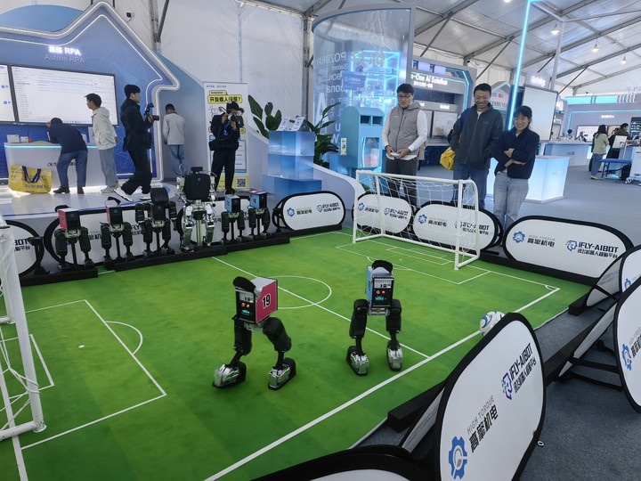 機器人在第八屆世界聲博會上進行足球比賽(11月3日攝)。新華社記者 汪海月 攝