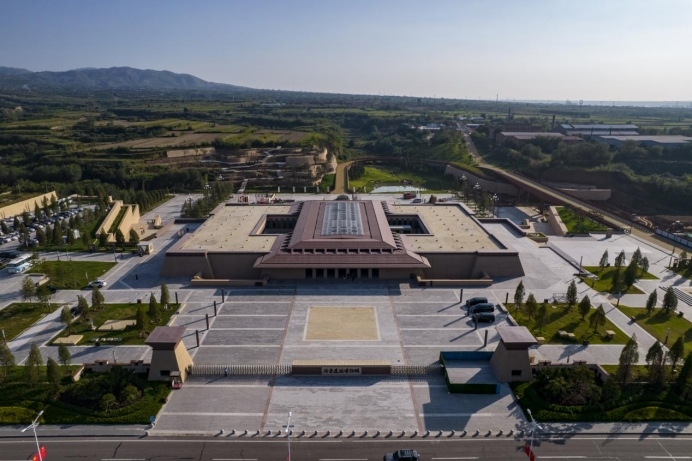 從空中俯瞰陶寺遺址博物館,外觀設計呈現一個“中”字。(資料圖)新華網發(fā)(王梓軒攝)