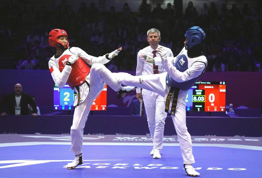 圖為10月30日在江蘇無錫舉行的一場2025年世界跆拳道錦標賽比賽。新華社發(fā)(劉臻睿攝)