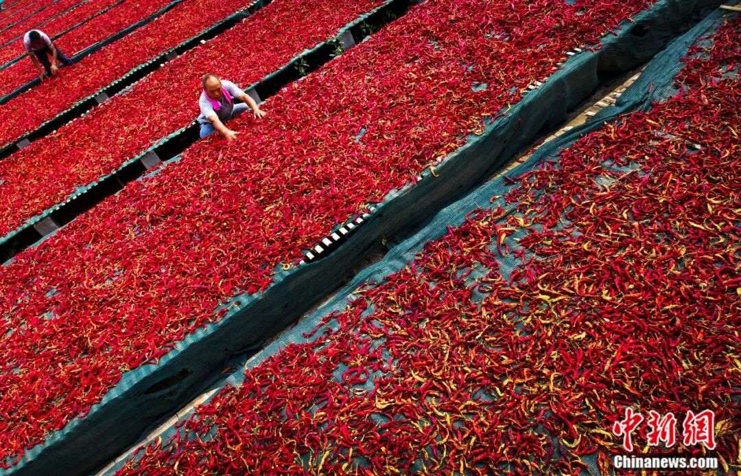 冀南平原上,連片的辣椒田如紅色海洋翻涌——細長的羊角椒緊緊扒著枝頭蕩來蕩去,油亮的皮膚曬得通紅。
