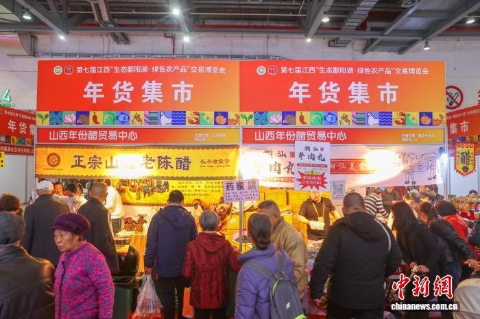 中新社南昌1月16日電 (記者 吳鵬泉)湖南新化紅茶、山西老陳醋、江西贛南臍橙……第七屆江西“生態(tài)鄱陽湖·綠色農產品”交易博覽會(簡稱“江西農博會”)16日在南昌開幕,逾800家展商攜6000余款產品參展,攪熱江西年貨市場。