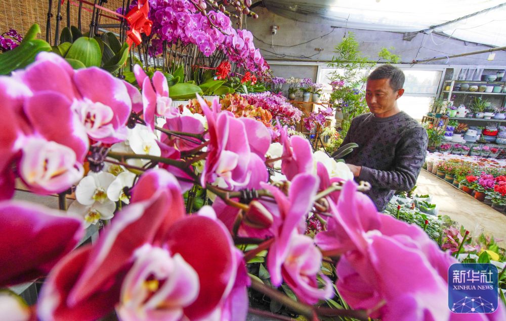 ↑ 1月22日,市民在山東省青州市花卉苗木交易中心選購鮮花。新華社發(fā)(王繼林攝)