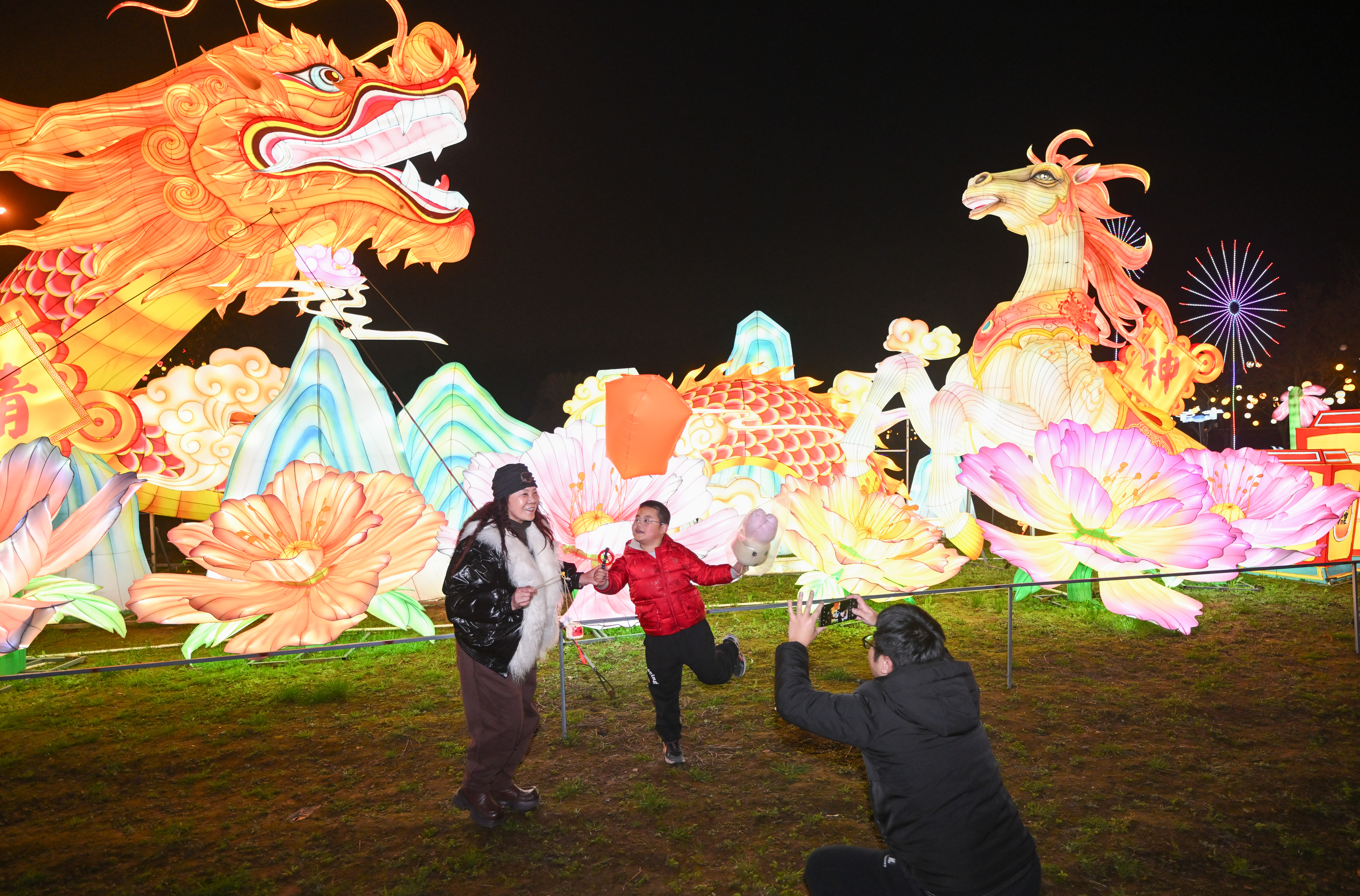 在銅梁,銅梁第十二屆龍燈藝術(shù)節(jié)主會(huì)場(chǎng),奇彩夢(mèng)園以“龍韻新燈 醉美銅梁”為主題進(jìn)行升級(jí),龍燈規(guī)模較去年翻倍,呈現(xiàn)4組大型主題花燈與43組中型特色燈組。花燈設(shè)計(jì)師賀志龍介紹,景區(qū)大門設(shè)計(jì)為“雙龍戲珠”,內(nèi)部燈組則劃分為新年傳統(tǒng)、非遺技藝、童風(fēng)童趣、奇幻未來(lái)四大板塊。這場(chǎng)燈會(huì)致力于為不同年齡階段人群打造相應(yīng)燈組與打卡點(diǎn),讓人們?cè)诔两焦庥翱臻g中,感受中華龍文化的魅力。