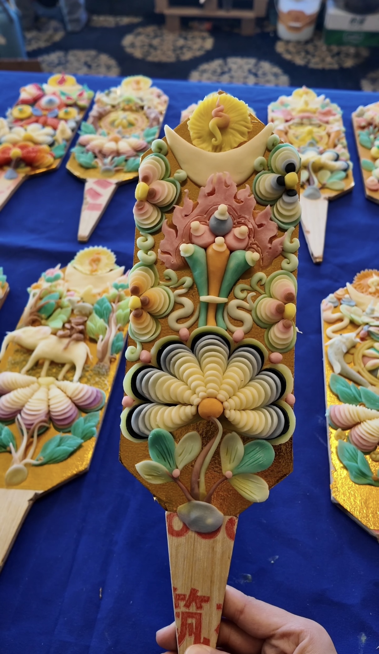 倫珠指著作品解釋,常見題材既有象征和諧共處的“和睦四瑞”,也有寓意吉祥的“八吉祥徽”。有的款式相對(duì)簡潔,有的極為繁復(fù)、層疊堆彩。如花瓣纖毫畢現(xiàn)的蓮花等款式,其制作耗時(shí)往往是普通款的5到7倍以上。