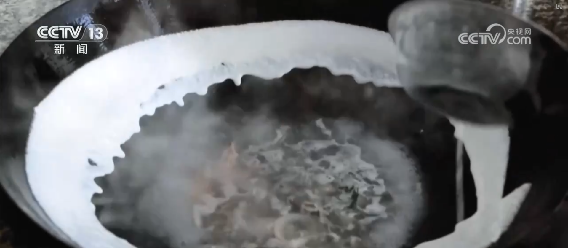 鍋邊的制作并不復(fù)雜,以高湯為底,加入蝦米、紫菜、干貝、香菇、蟶干、魚(yú)干等食材共同熬煮。之所以叫“鍋邊”,是因?yàn)橹谱鲿r(shí),要把大米磨成的米漿沿著燒熱的鍋的邊緣順時(shí)針澆上一圈。而作為鍋邊的“靈魂”,米漿的制作可有大講究。