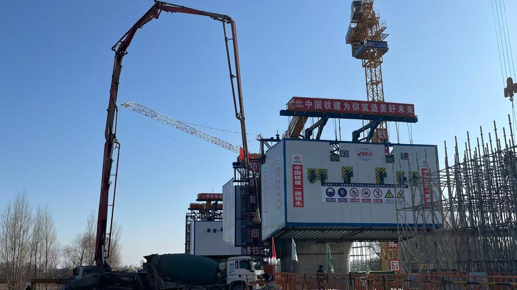 在中鐵二十一局集團(tuán)有限公司所建項目處,機(jī)器轟鳴與焊花飛濺交織,鋼鐵巨臂緩緩運轉(zhuǎn),巨大的橋墩向遠(yuǎn)方延展開來。