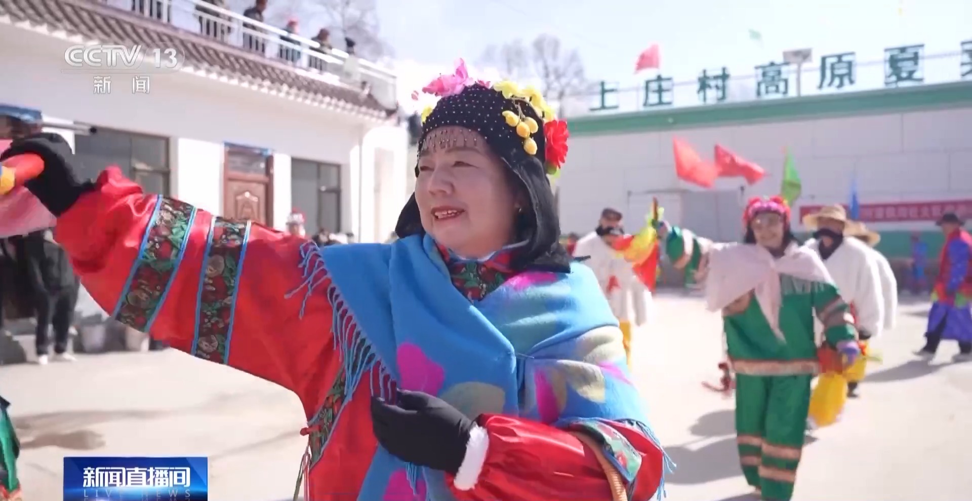 當(dāng)?shù)乇硌莸纳缁鸾旭R銜山秧歌,是甘肅省級非遺,一種以歌舞等民間藝術(shù)形式演繹本地農(nóng)耕文化的活動。上莊村外出務(wù)工的村民較多,村里的社火表演已經(jīng)中斷十多年。這次村里提出重啟社火,村民們熱情高漲、踴躍報名。