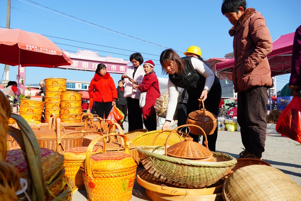 一些南方地區(qū)稱村鎮(zhèn)市集為“圩”。東田鎮(zhèn)“趕圩”的歷史悠久,至今已延續(xù)400多年。一位攤主告訴記者,“農(nóng)歷每月逢四逢九的日子便是東田鎮(zhèn)的趕圩日。年關(guān)前的集日人尤其多,大家都在熱熱鬧鬧地囤年貨?!?/p>