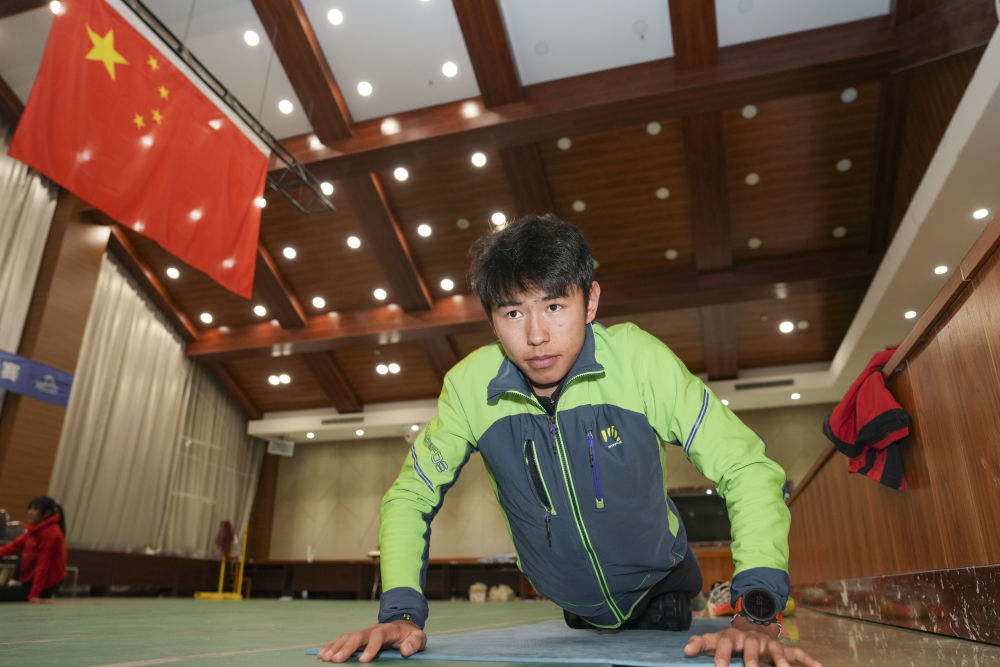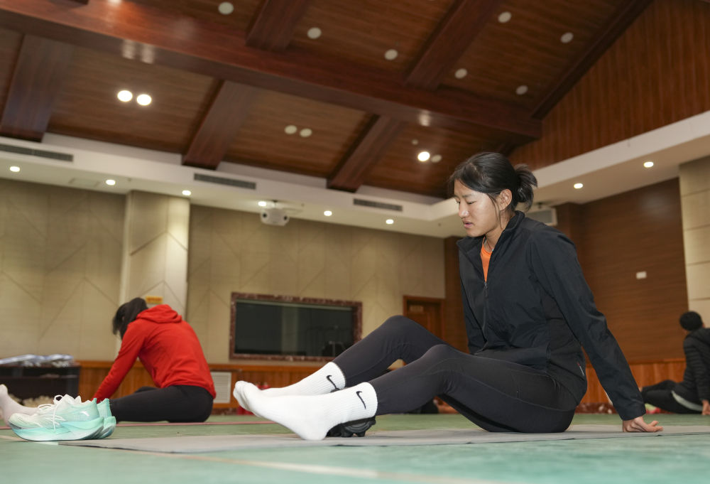 冬奧會前,次旦玉珍在一次訓(xùn)練后拉伸放松(2025年12月15日攝)。新華社記者 胡虎虎 攝