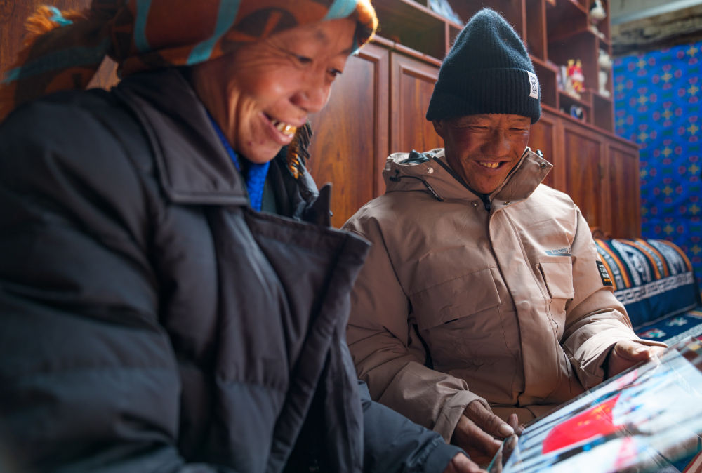 次旦玉珍的父母在家中翻看女兒參賽的照片(2026年2月7日攝)。新華社記者 丁增尼達 攝