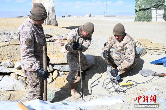 圖為在5592哨所,戰(zhàn)士們在維修臺階。趙朗 攝