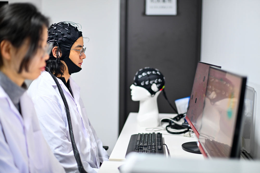 2026年2月27日,在位于天津?yàn)I海高新區(qū)的中電云腦(天津)科技有限公司,工作人員進(jìn)行腦機(jī)接口技術(shù)測(cè)試。新華社記者 趙子碩 攝