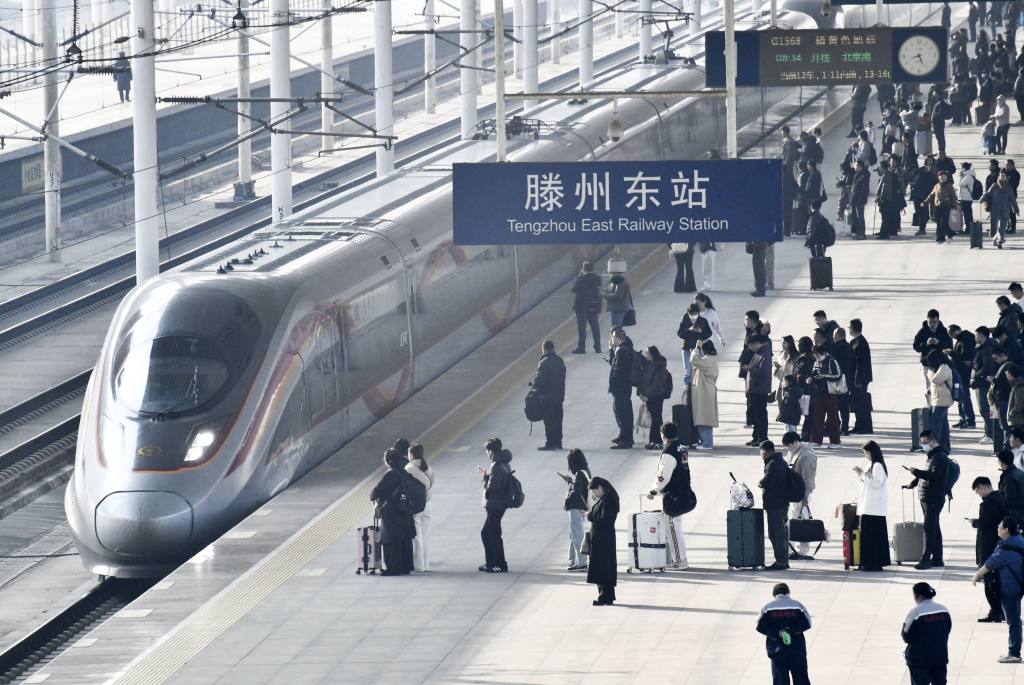 3月13日,旅客在山東省棗莊市滕州東站乘車(chē)出行。新華社發(fā)(李宗憲攝)