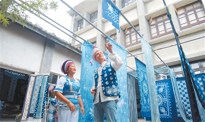 英國籍視頻博主斯圖爾特·維金在云南大理體驗白族扎染技藝。吳桐 攝