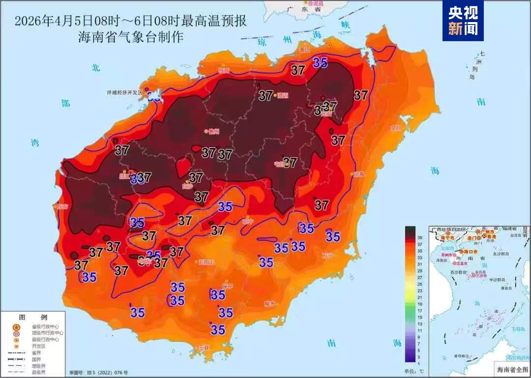海南省氣象局4月5日下午繼續(xù)發(fā)布高溫四級(jí)預(yù)警:預(yù)計(jì)4月6日白天,???、澄邁、臨高、定安、屯昌、儋州、白沙、昌江和東方等9個(gè)市縣的大部分鄉(xiāng)鎮(zhèn)將出現(xiàn)37℃以上的高溫天氣,請(qǐng)有關(guān)單位做好防暑降溫、森林防滅火等相關(guān)工作。