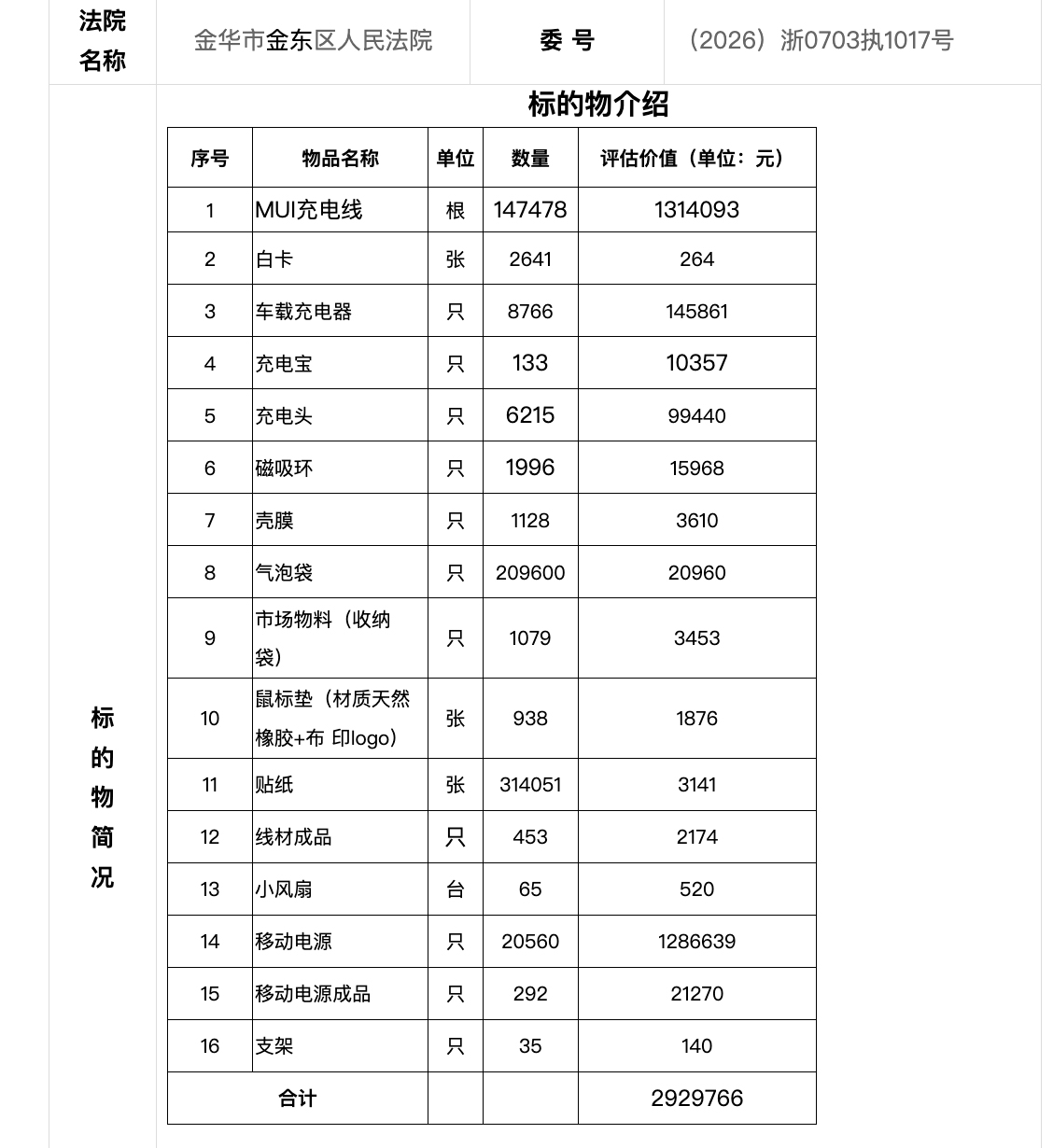 中新網(wǎng)4月7日電(吳家駒)阿里資產(chǎn)·司法平臺顯示,近日,深圳華中科新材料技術(shù)有限公司所有的一批資產(chǎn)將被司法拍賣,包括:20560只移動電源、147478根MUI充電線等,起拍價205.1萬元,評估價約292.98萬元,拍賣時間為4月19日10時至4月20日10時。