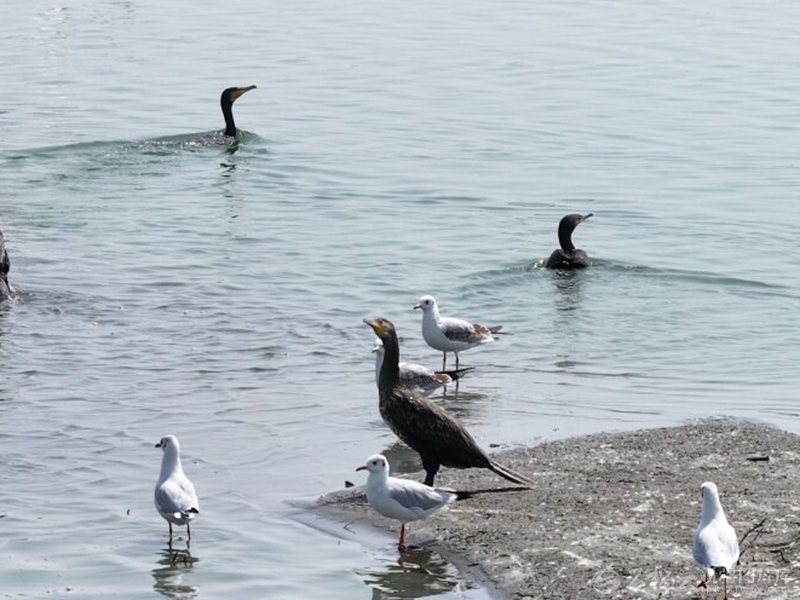 白鷺、鸕鶿、野鴨等水鳥在艾西曼湖邊嬉水?!觖溛崽m江·莫明攝