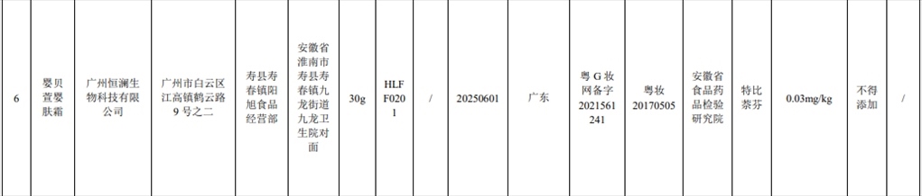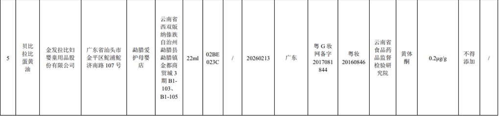 記者注意到,此次通報的7批次含禁用物質(zhì)化妝品,其中2批次是嬰童產(chǎn)品。產(chǎn)品標簽標示為金發(fā)拉比婦嬰童用品股份有限公司生產(chǎn)的貝比拉比蛋黃油被檢出含有黃體酮;產(chǎn)品標簽標示為廣州恒瀾生物科技有限公司生產(chǎn)的嬰貝萱嬰膚霜被檢出含有特比萘芬。