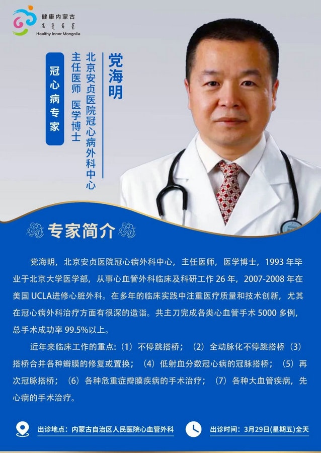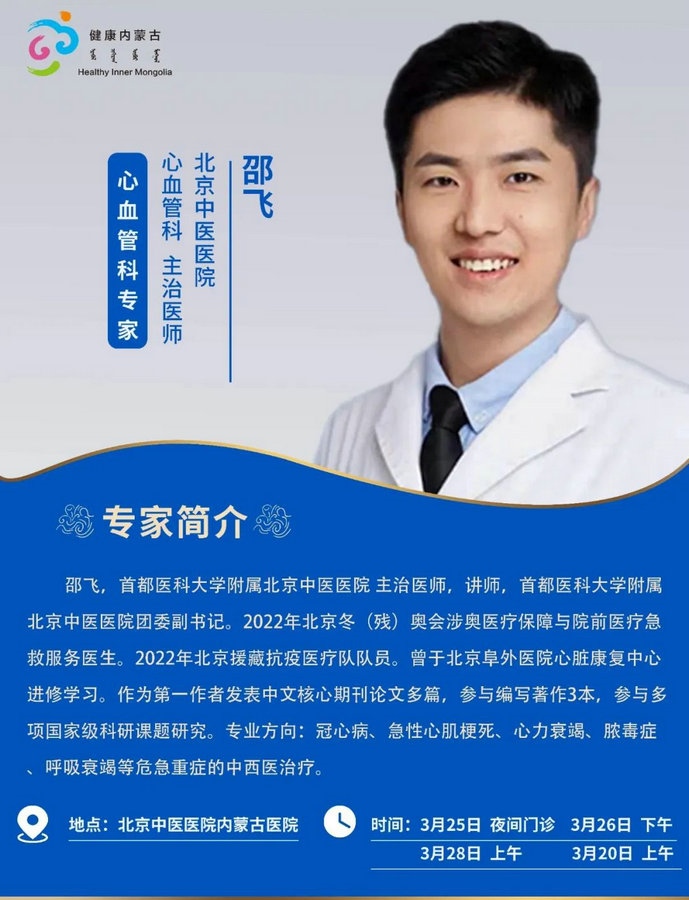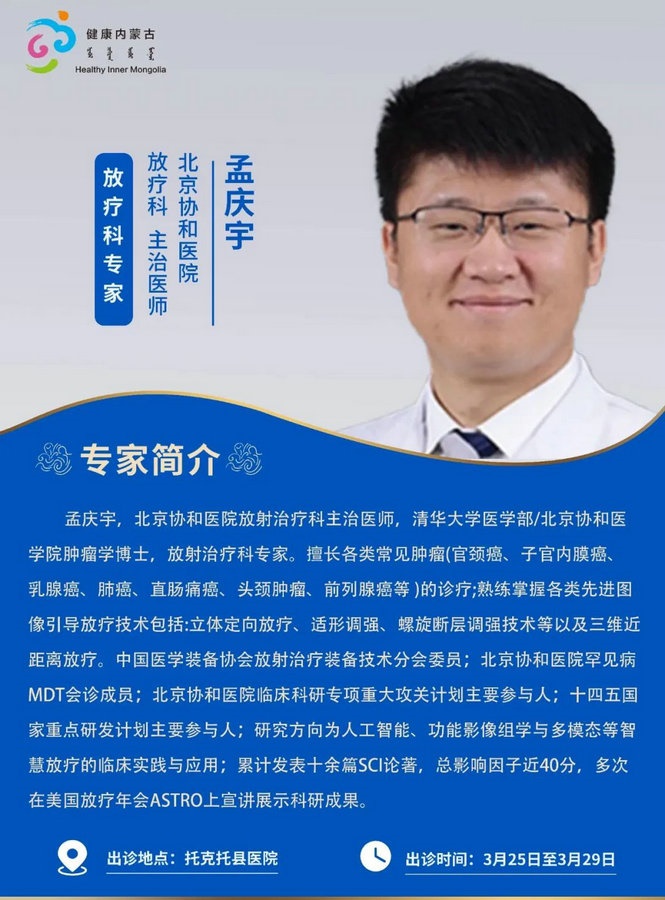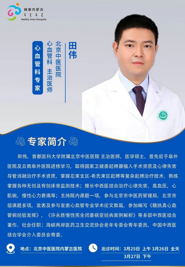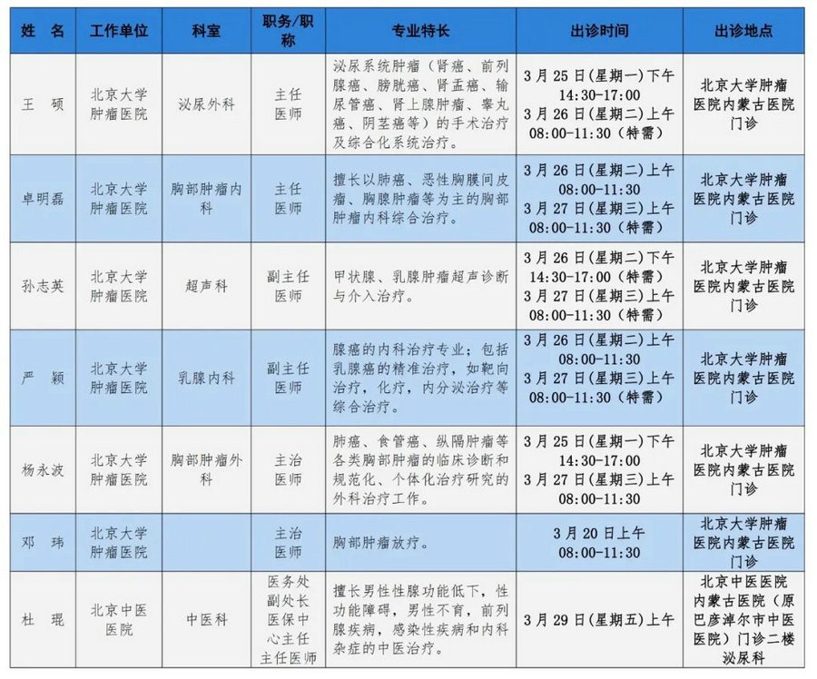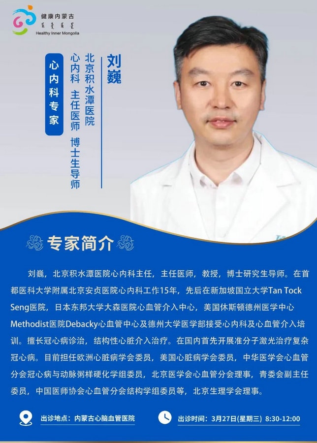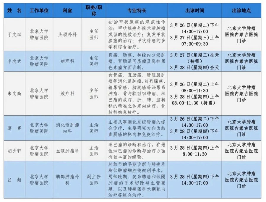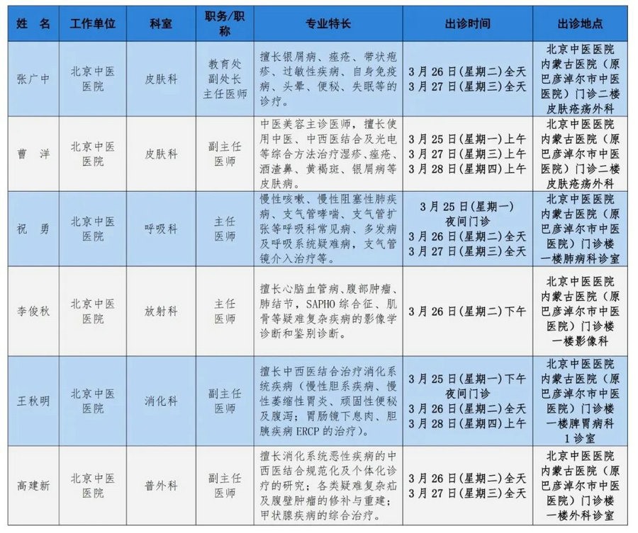 京蒙協(xié)作 政協(xié)助力。每周有北京相關(guān)協(xié)作醫(yī)院專家來(lái)呼和浩特出診,現(xiàn)將本周專家出診信息予以發(fā)布。