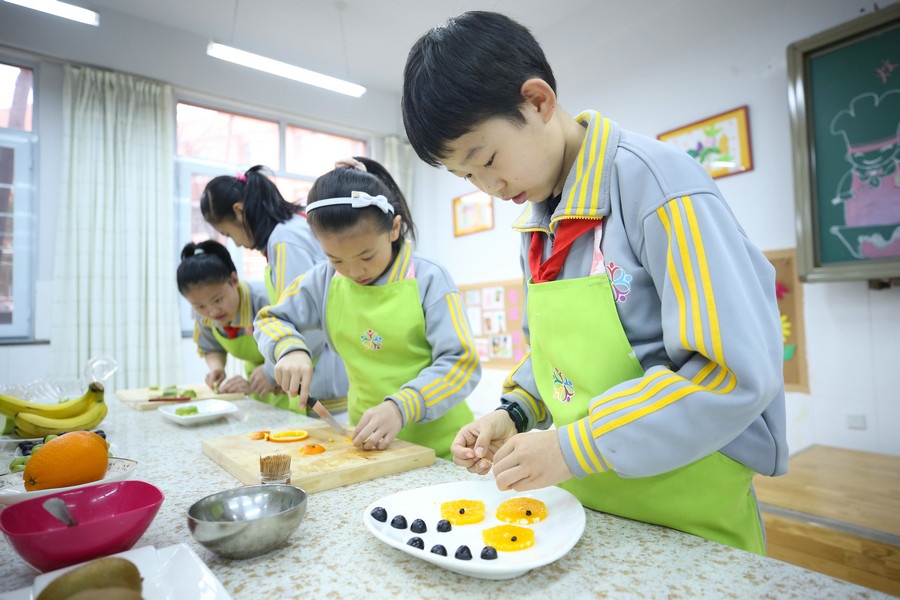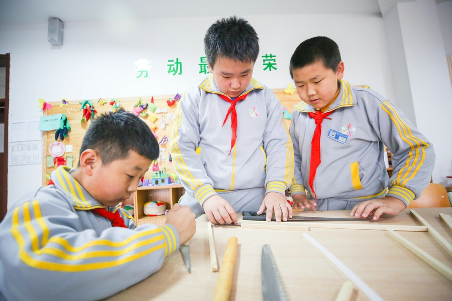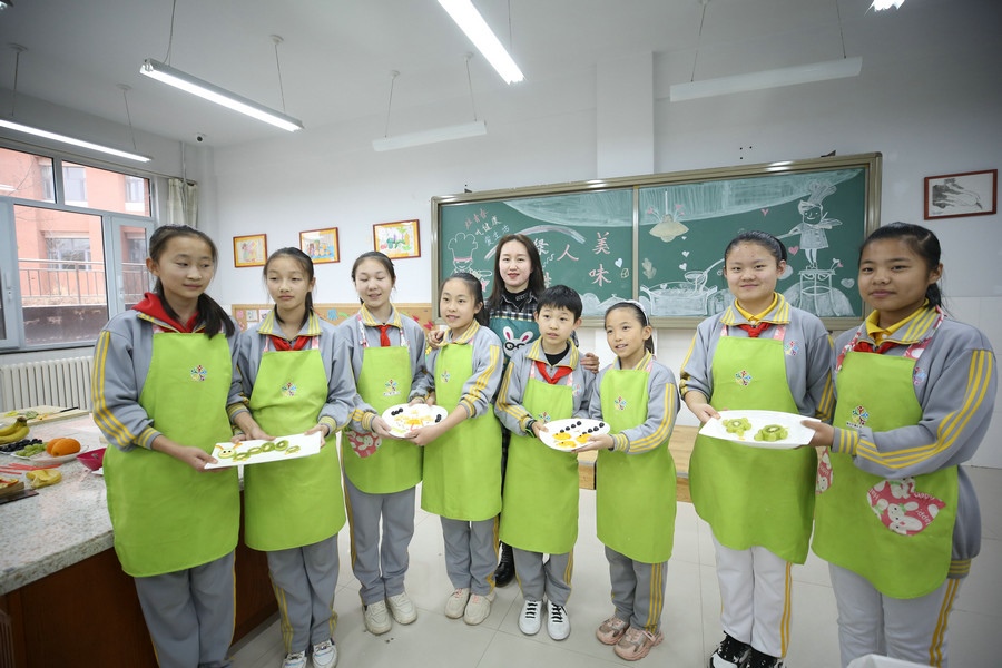 “今日課程學(xué)習(xí)的是水果拼盤和可樂(lè)雞翅。”跟隨勺鏟翻動(dòng),添上各種調(diào)料,一個(gè)個(gè)身著圍裙的學(xué)生們正在老師的指導(dǎo)下忙的不亦樂(lè)乎。從擇菜、烹飪到清洗廚具,一個(gè)個(gè)學(xué)生儼然已經(jīng)成為“小廚師”。從三年級(jí)開始,學(xué)校還開展了陶藝、木工、科技制作等活動(dòng),找準(zhǔn)學(xué)生的興趣點(diǎn),學(xué)校有趣的勞動(dòng)技能活動(dòng)吸引了學(xué)生的眼球。