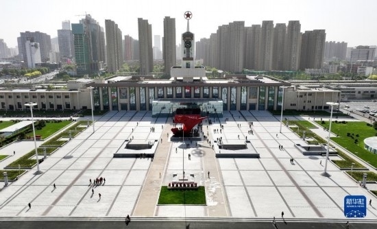 這是4月29日拍攝的石家莊解放紀念館(無人機照片)。