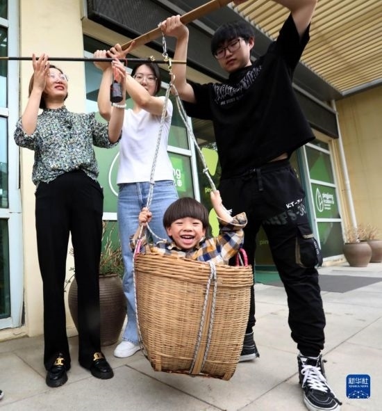 5月5日,河南省濟(jì)源市第一幼兒園的孩子體驗立夏習(xí)俗。