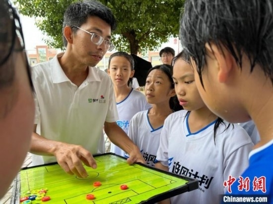 圖為晨曦女足的教練賴(lài)文亮在比賽前給隊(duì)員們布置陣容。劉力鑫 攝