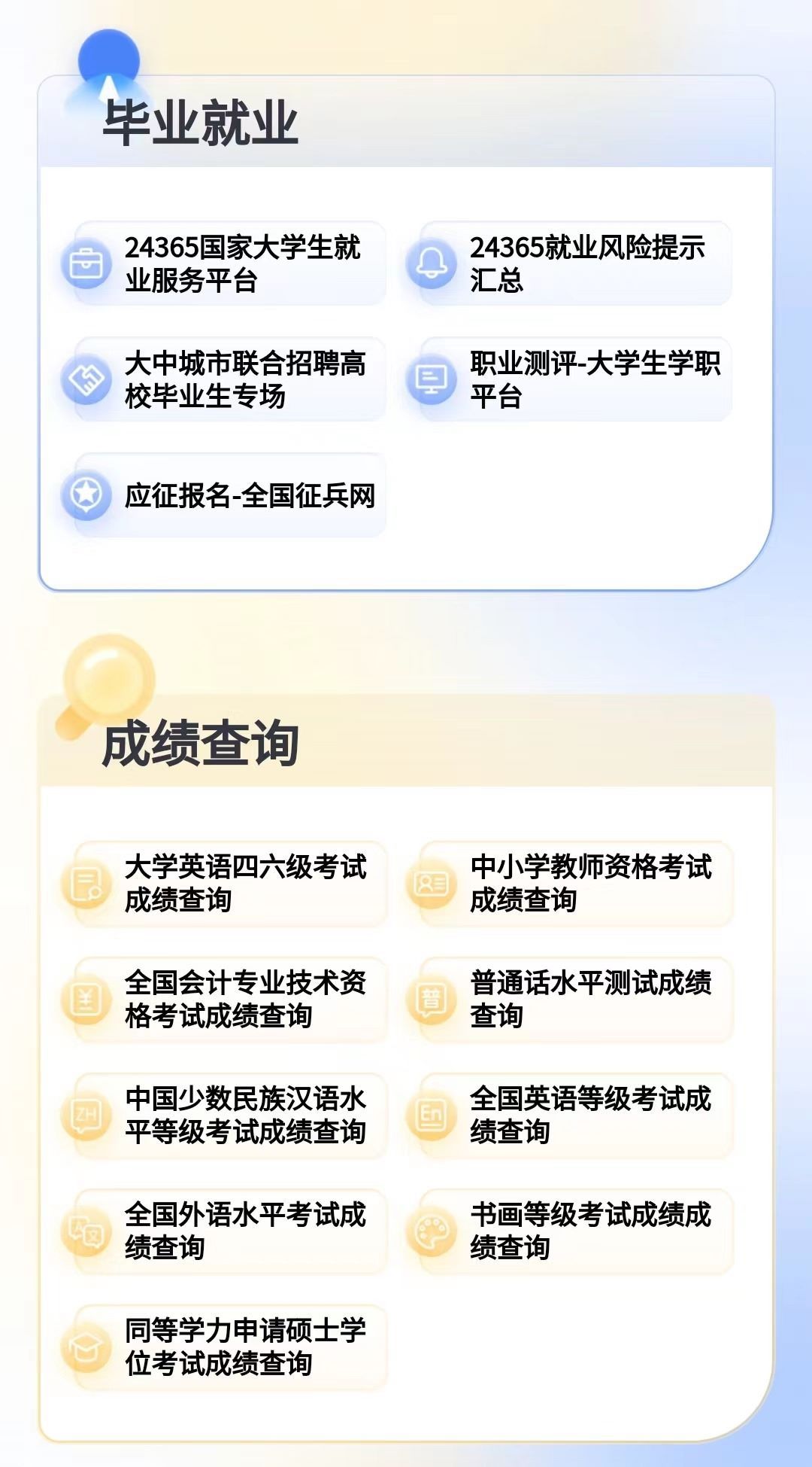 1.查詢中小學(xué)教資考試成績;