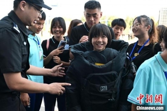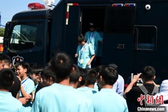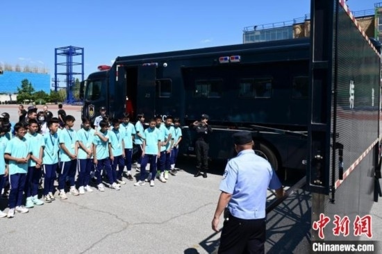 由北京市公安局支教民警組建并執(zhí)教的貴州黔西南州青少年校園足球男、女隊員共34人來到北京參加夏令營活動。今天,隊員們觀看特警訓練及警犬演示,現場體驗警械武器和警車等裝備使用,感受首都公安風采。
