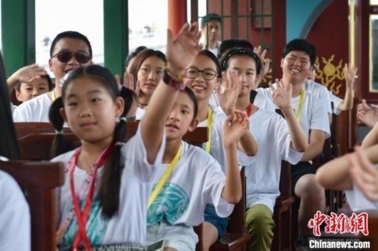 8月9日,2023海外華裔青少年夏季研學(xué)營(yíng)進(jìn)入第三天,海內(nèi)外營(yíng)員走進(jìn)頤和園,乘坐畫(huà)舫游昆明湖。