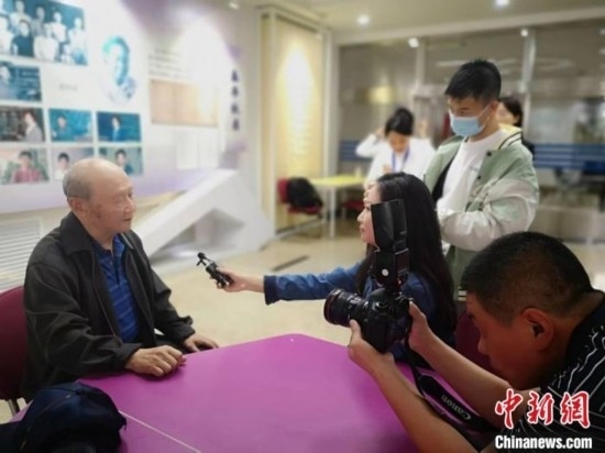 退休教師趙汝生與第二南開(kāi)學(xué)校在校師生交流并接受媒體采訪。 劉文 攝