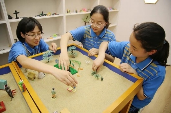2023年5月30日,在湖北省十堰市鄖陽(yáng)區(qū)一中,高三學(xué)生在學(xué)校的沙盤室內(nèi)通過(guò)擺放物件釋放壓力。通訊員 曹忠宏 宋紅梅 攝