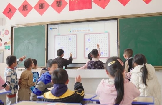 2023年12月20日,在云南省昭通市魯?shù)榭h卯家灣小學(xué),學(xué)生們通過(guò)智能雙師課堂,進(jìn)行《注意力專項(xiàng)訓(xùn)練》課程的大屏互動(dòng)。通訊員 鄭敬亭 攝