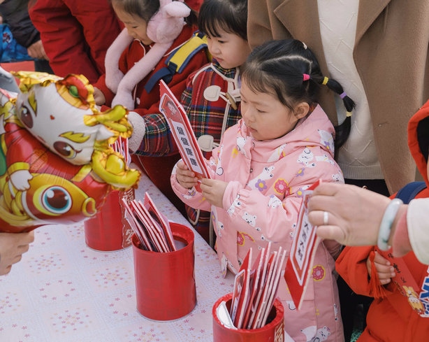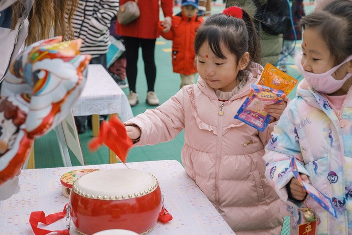 為歡迎小朋友回家,幼兒園精心布置,鯉魚(yú)跳龍門、福氣上上簽、朱砂啟智、擊鼓明智等。