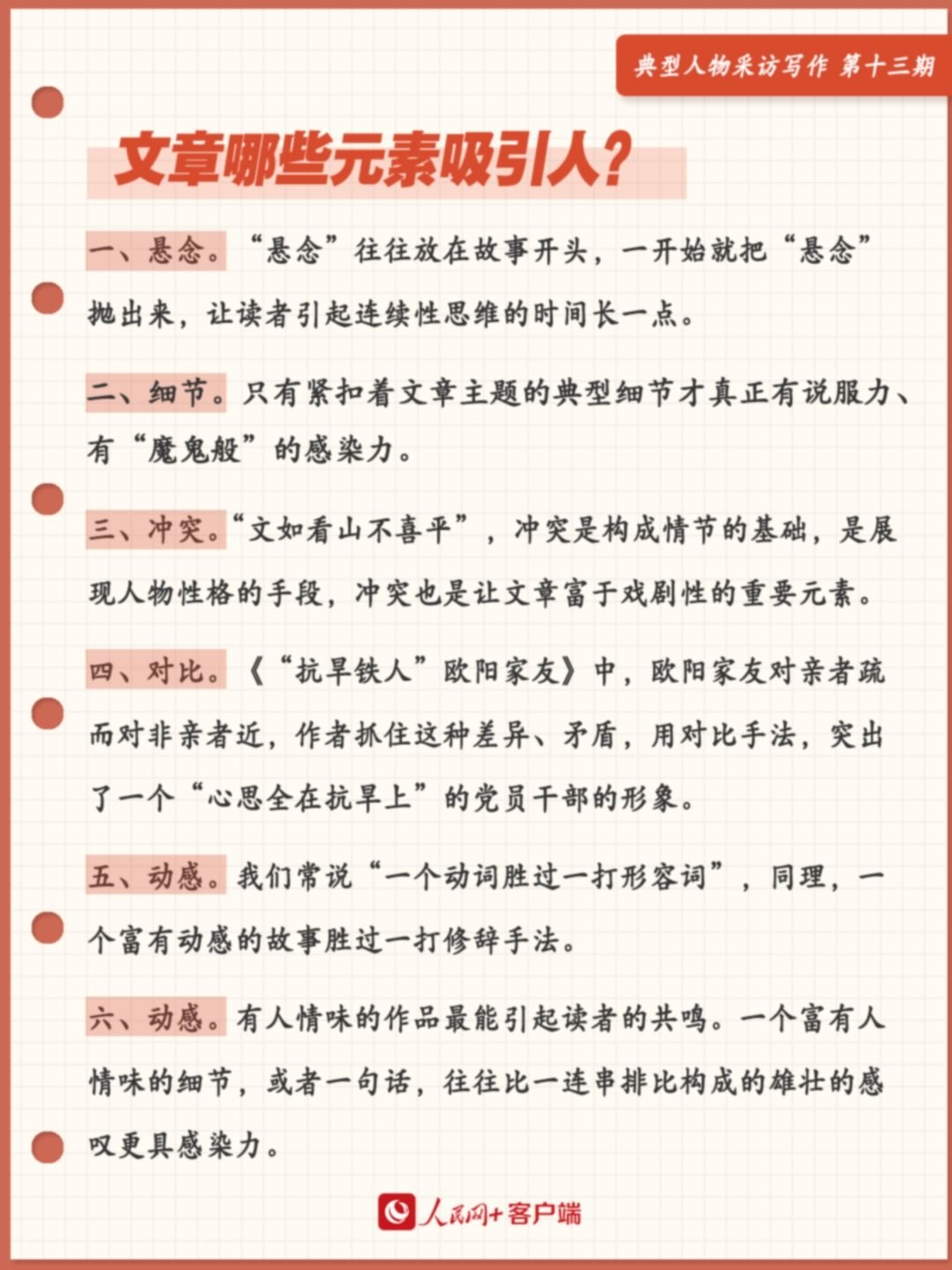 元素不是部件,一篇好看的稿件,也許只需用好一兩個元素,也許得多種元素交替運(yùn)用。上述梳理只涉及部分元素,倘若全面分析文章抓人的元素,還有很多。