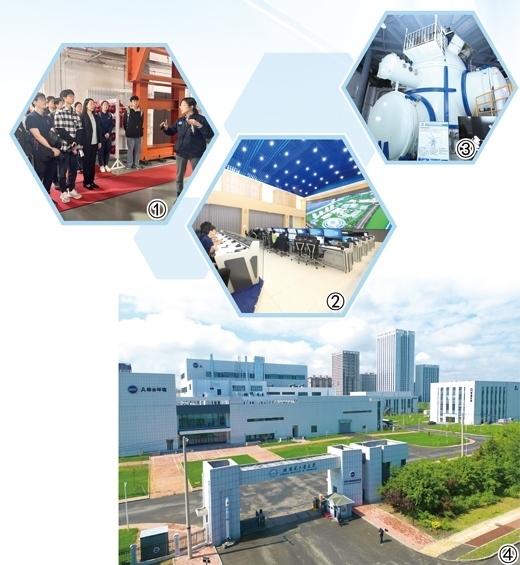 圖①:學(xué)生在“地面空間站”內(nèi)上課。本報記者 方 圓攝 圖②:學(xué)生在“地面空間站”內(nèi)觀看教學(xué)視頻。辛 然攝 圖③:大尺度綜合輻照環(huán)境模擬試驗艙。本報記者 方 圓攝 圖④:空間環(huán)境地面模擬裝置外景。辛 然攝