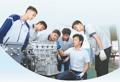 江西萍鄉(xiāng)市湘東中等專業(yè)學校,學生在學習發(fā)動機拆裝與檢測技能。任乾良攝(影像中國)