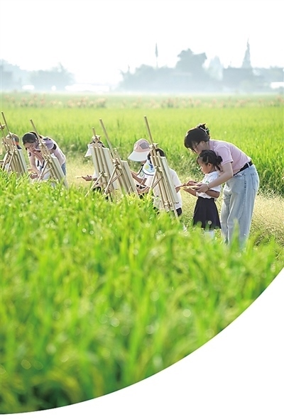四川眉山市彭山區(qū)學院路幼兒園學生在田間寫生。翁光建攝(影像中國)
