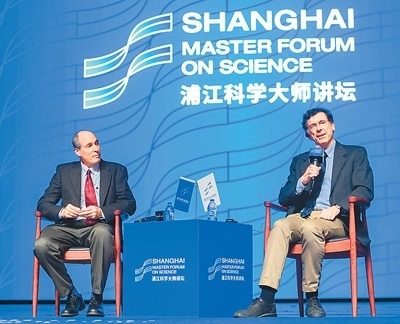 克萊因伯格(右)在復(fù)旦·浦江科學(xué)大師講壇活動(dòng)中回答現(xiàn)場(chǎng)觀眾提出的問(wèn)題。(資料圖)
