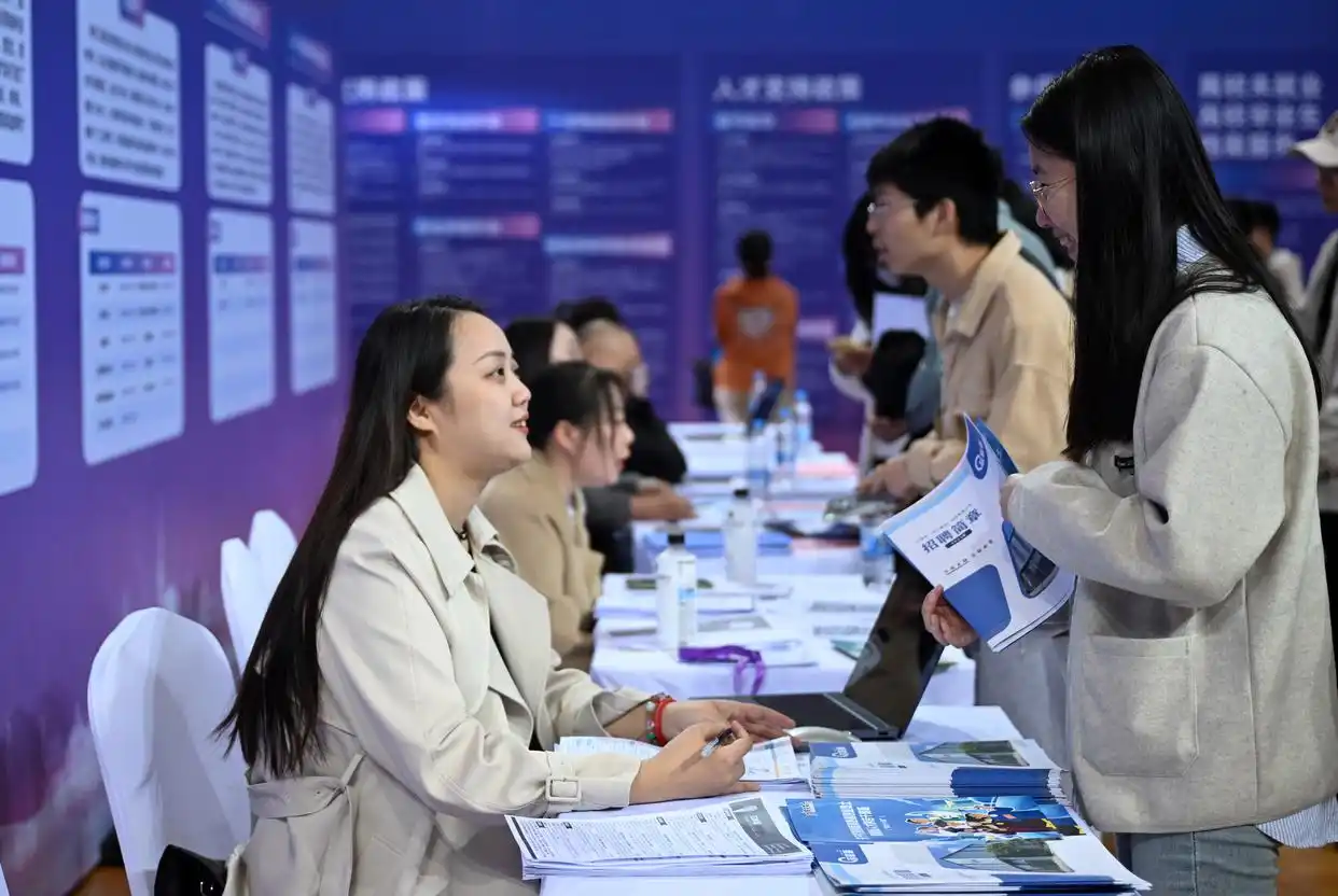 3月20日,環(huán)渤海城市聯(lián)合招聘高校畢業(yè)生春季專場(chǎng)活動(dòng)在天津職業(yè)技術(shù)師范大學(xué)啟動(dòng),來(lái)自環(huán)渤海地區(qū)400多家企業(yè)提供崗位1.1萬(wàn)個(gè)?;顒?dòng)現(xiàn)場(chǎng)還設(shè)立就業(yè)服務(wù)臺(tái),為學(xué)生提供指導(dǎo)。圖為當(dāng)日,求職學(xué)生(右)和招聘方代表在招聘會(huì)現(xiàn)場(chǎng)交談。新華社記者 趙子碩攝