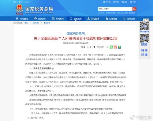 據(jù)中國之聲《新聞縱橫》報(bào)道:新修改的個(gè)人所得稅法將于2019年1月1日正式實(shí)施。國家稅務(wù)總局日前發(fā)布公告明確了全面實(shí)施新個(gè)人所得稅法的征管辦法,確保新舊稅制平穩(wěn)過渡。
