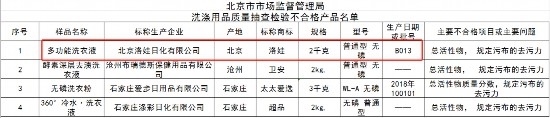 公告顯示,北京市市場(chǎng)監(jiān)督管理局2020年6月24日公示的洗滌用品質(zhì)量抽檢信息中,標(biāo)稱生產(chǎn)企業(yè)“北京市洛娃日化有限公司”,標(biāo)稱商標(biāo)“洛娃”,規(guī)格“2千克”,型號(hào)“普通型無磷”,生產(chǎn)日期或批號(hào)“B013”的多功能洗衣液,不合格項(xiàng)目“總活性物,規(guī)定污布的去污力”。該產(chǎn)品被抽檢場(chǎng)所為“密云縣密云鎮(zhèn)億源來商店”,現(xiàn)“北京市洛娃日化有限公司”聲稱該產(chǎn)品為假冒其注冊(cè)商標(biāo)及廠名、廠址的產(chǎn)品。